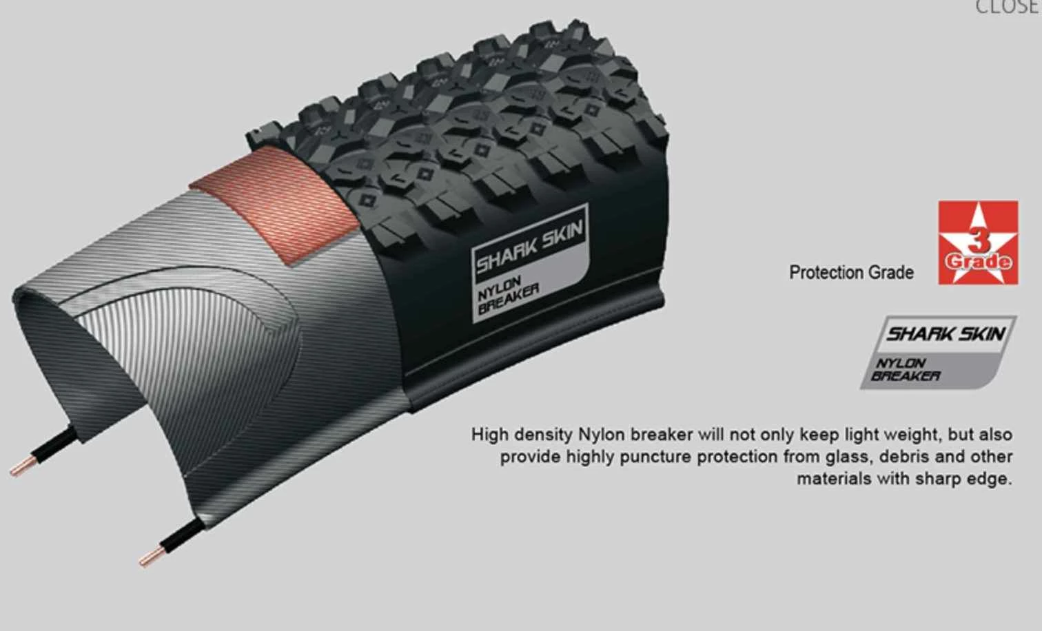 SPS er et beskyttende shark skin lag der er integreret i siden på dækket. Dette giver dækket et stor beskyttelse for side punkteringer mod skarpe genstande.