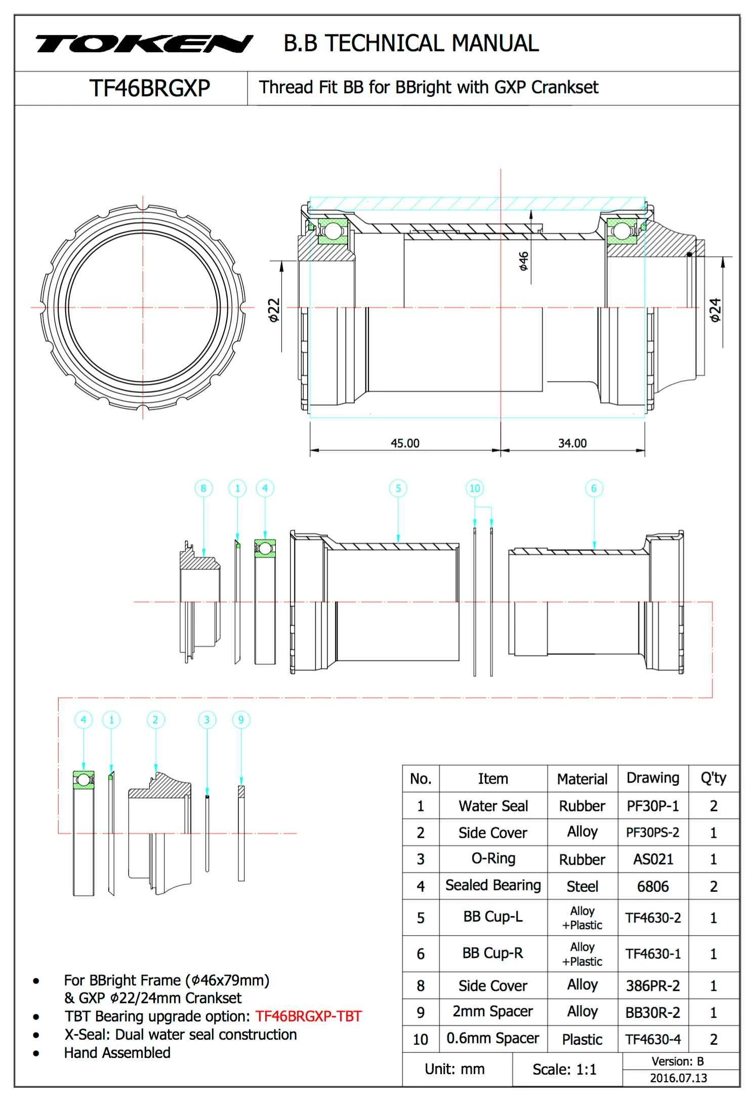 Pressfit 30 (PF30) krankboks til montering i road stel med ø46 hul og 79 mm bred krankboks