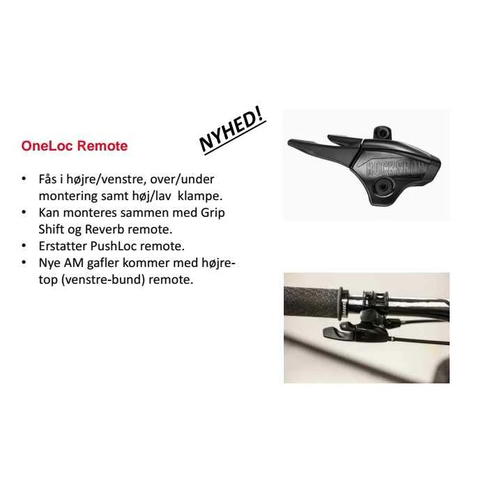 Den nye RockShox OneLoc Remote giver fuld kontrol over din forgaffel. OneLoc får i både højre og venstre udgave og kan placeres over eller under styret.