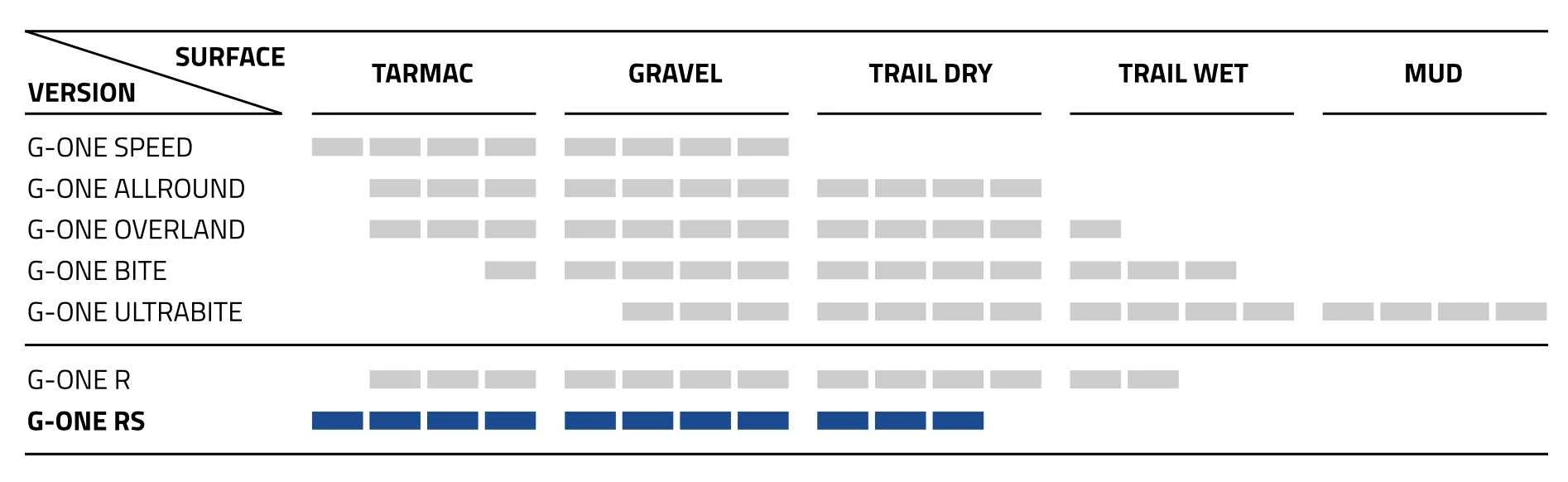 - Bremse- og træksider til forhjul og baghjul takket være skællignende mønster