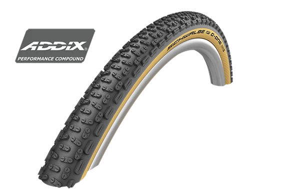 Created for off-road use. The aggressive tread design impresses with its compact “tape knobs” in the middle of the tread and provides full grip and unrivaled traction. The strong outer blocks provide the rider with safety at all times when cornering. The G-One Ultrabite’s off-road performance is noticeably enhanced by the stable construction and progressive Tubeless Easy technology. The tire is completed with the versatile Addix Speedgrip compound. In widths of 40mm and 50mm, the G-One Ultrabite is perfectly suited for use on gravel roads, forest tracks and trails, even in challenging conditions.