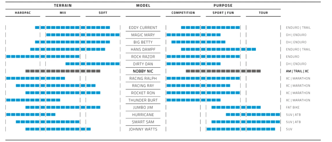 Kan bruges i hurtig cross-country racing, såvel som i teknisk krævende Enduro konkurrence. Nobby Nic er et fantastisk dæk gennem det danske efterår, vinter og forår.