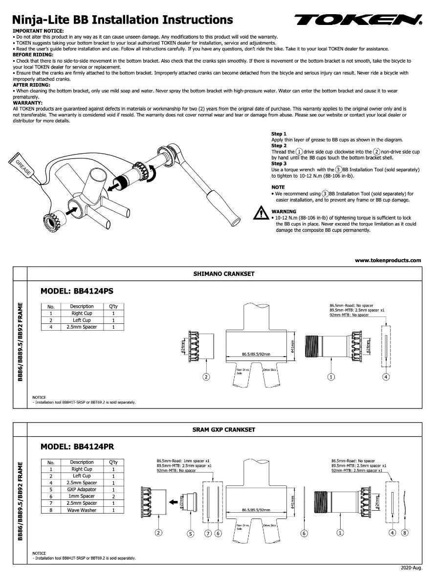 Pressfit Ninja Lite krankboks til montering af Shimano og lignende kranksæt: